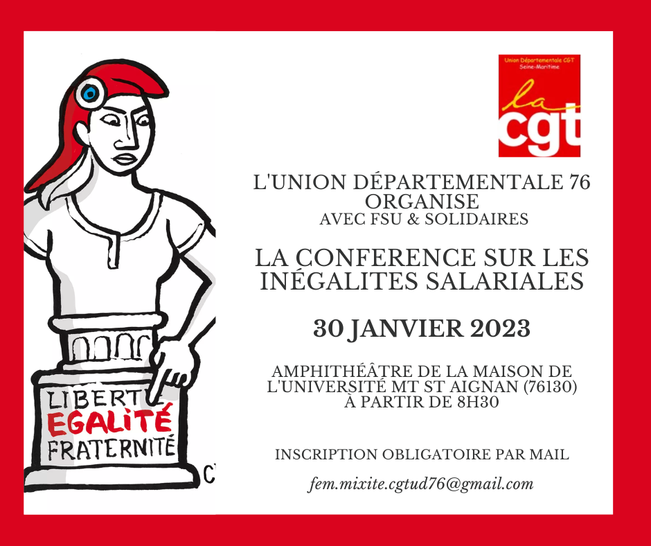 | Conférence sur les inégalités de salaires | 30 janvier 2023 à partir de 8h30 | Amphithéatre de la maison de l'université Mont St Aignan |